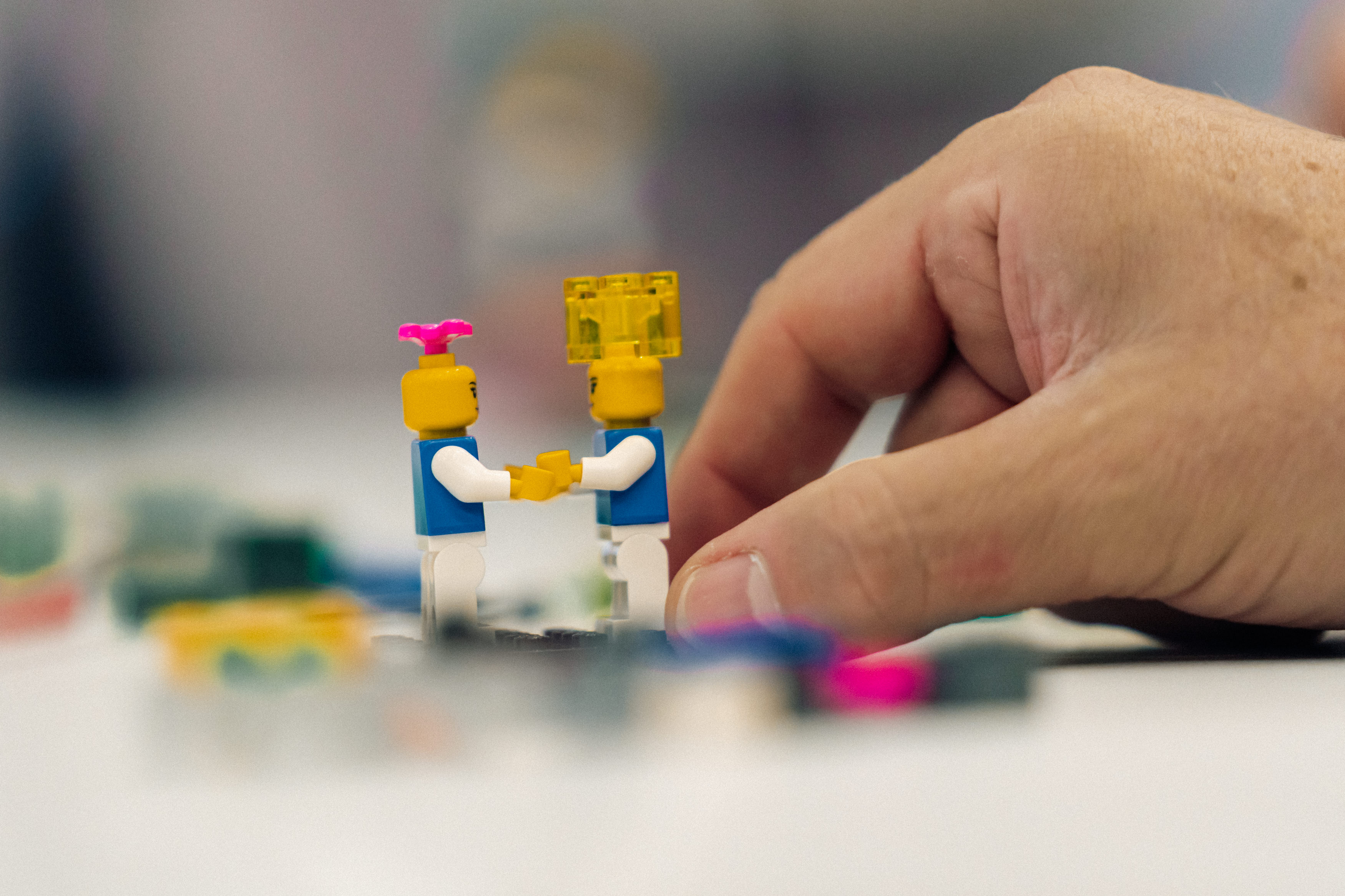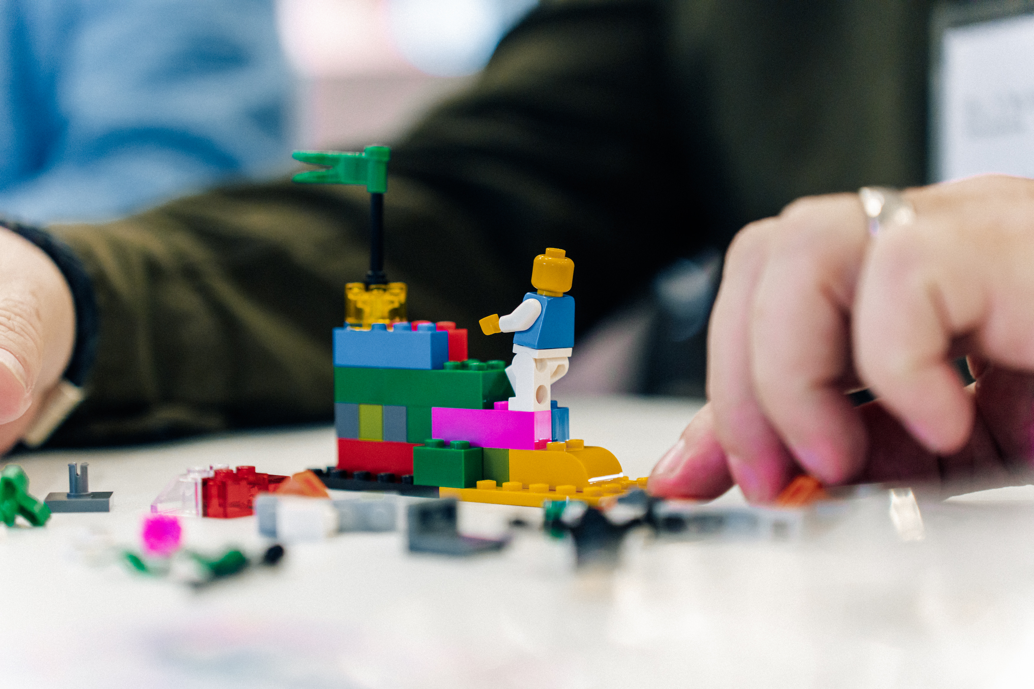 Danach hieß es: Ärmel hochkrempeln und bauen. Mit LEGO® Serious Play® entstanden kleine Modelle mit großer Aussagekraft, zu Fusion, Digitalisierung, Regionalität. Dabei ging es nicht ums Spielen, sondern ums Denken mit den Händen: um die Frage, was Kundennähe und genossenschaftliche Identität heute bedeutet.