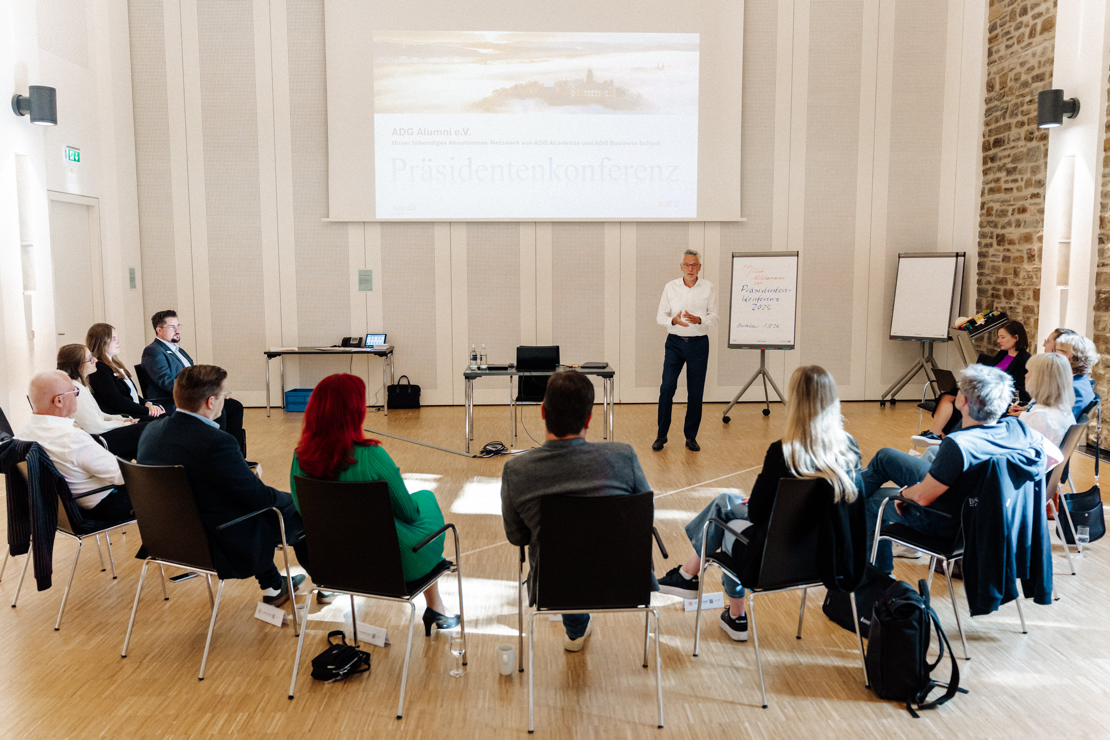 Zum Auftakt hatten sich Präsidenten und Klassensprecher aus ADG und ADG Business School getroffen. In Workshops und Gesprächsrunden ging es um die eigene Rolle, Regionalität, Mitgliedschaft und darum, wie man das Netzwerk weiter stärken kann.