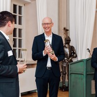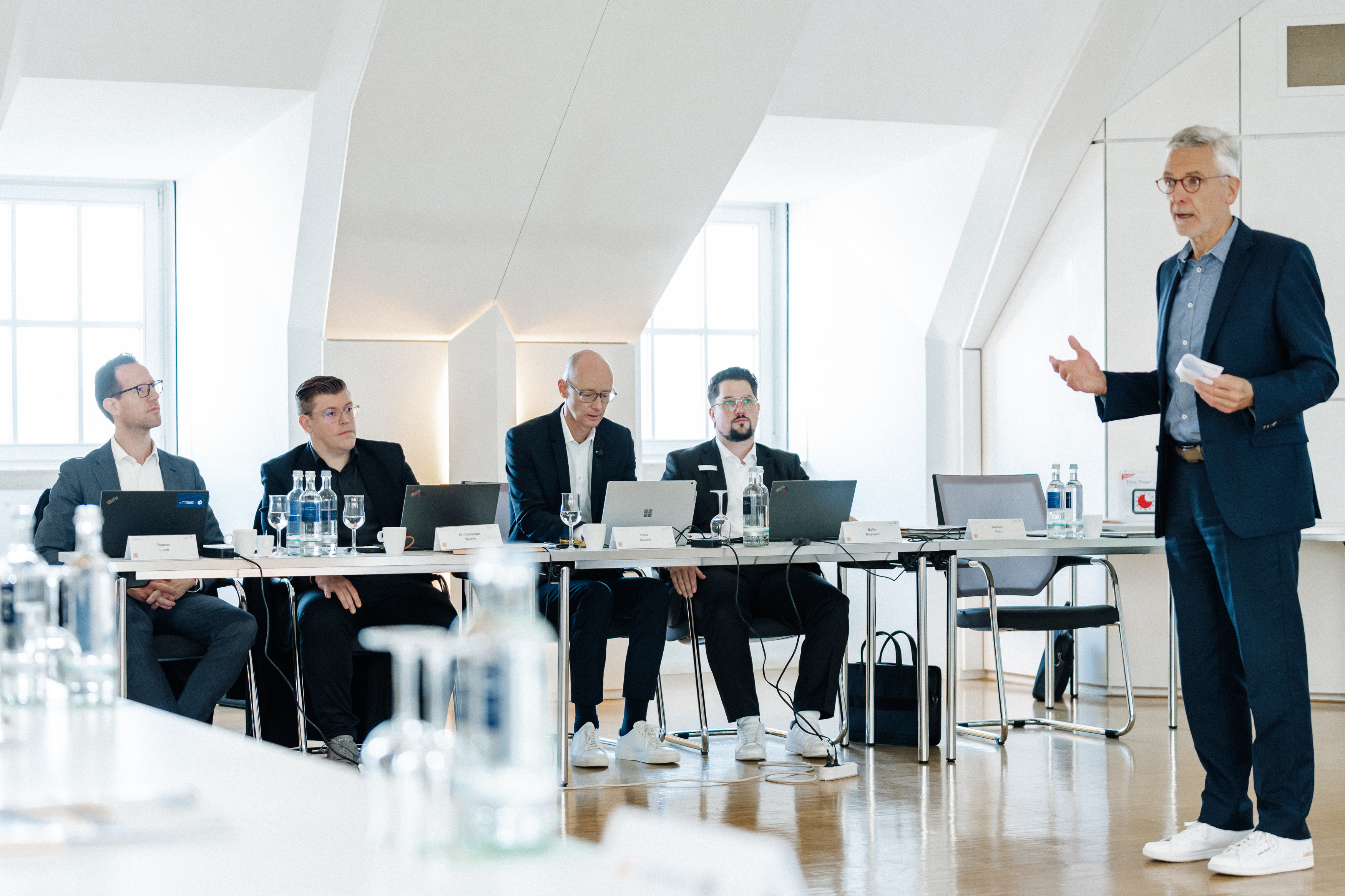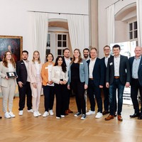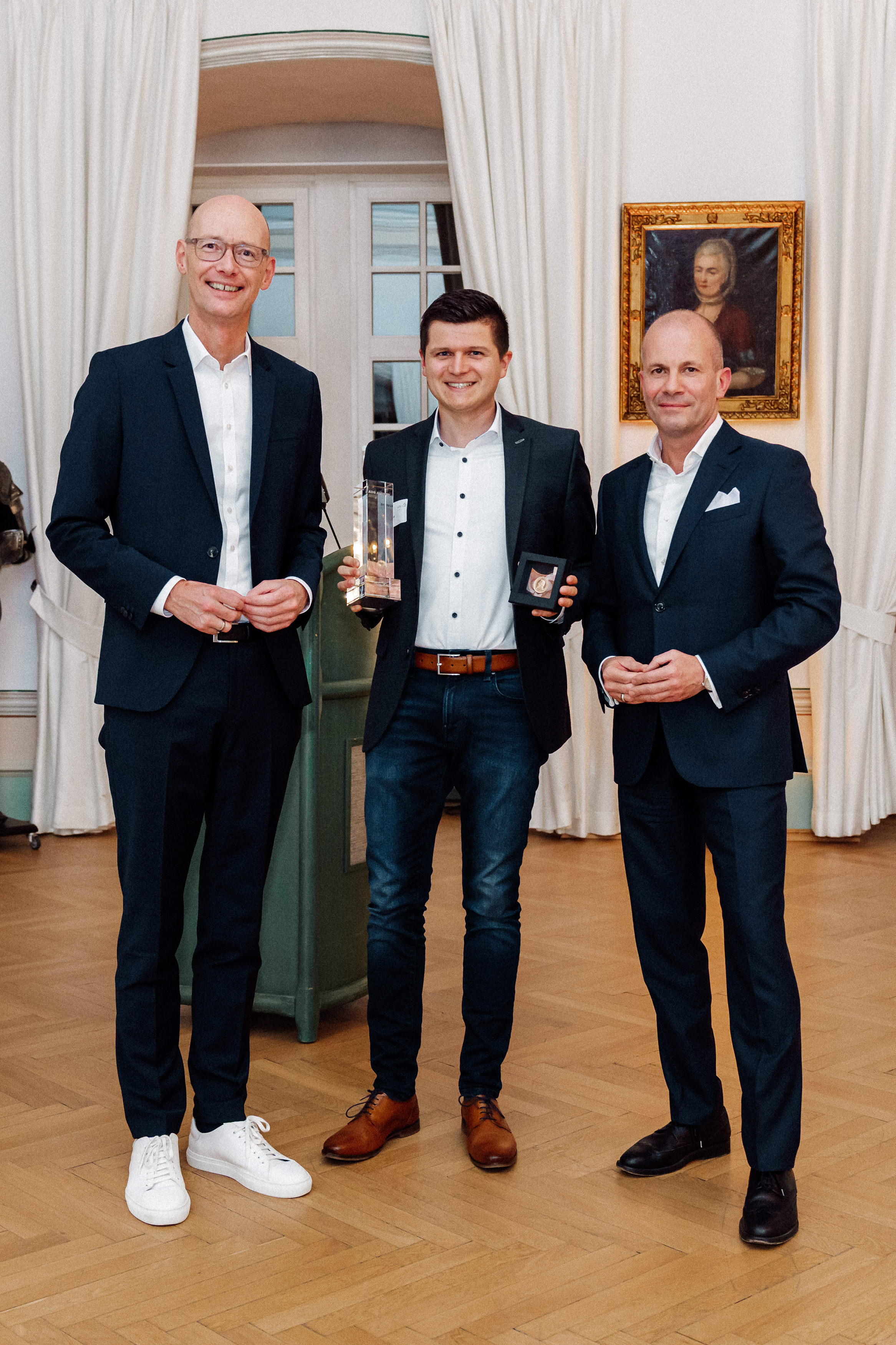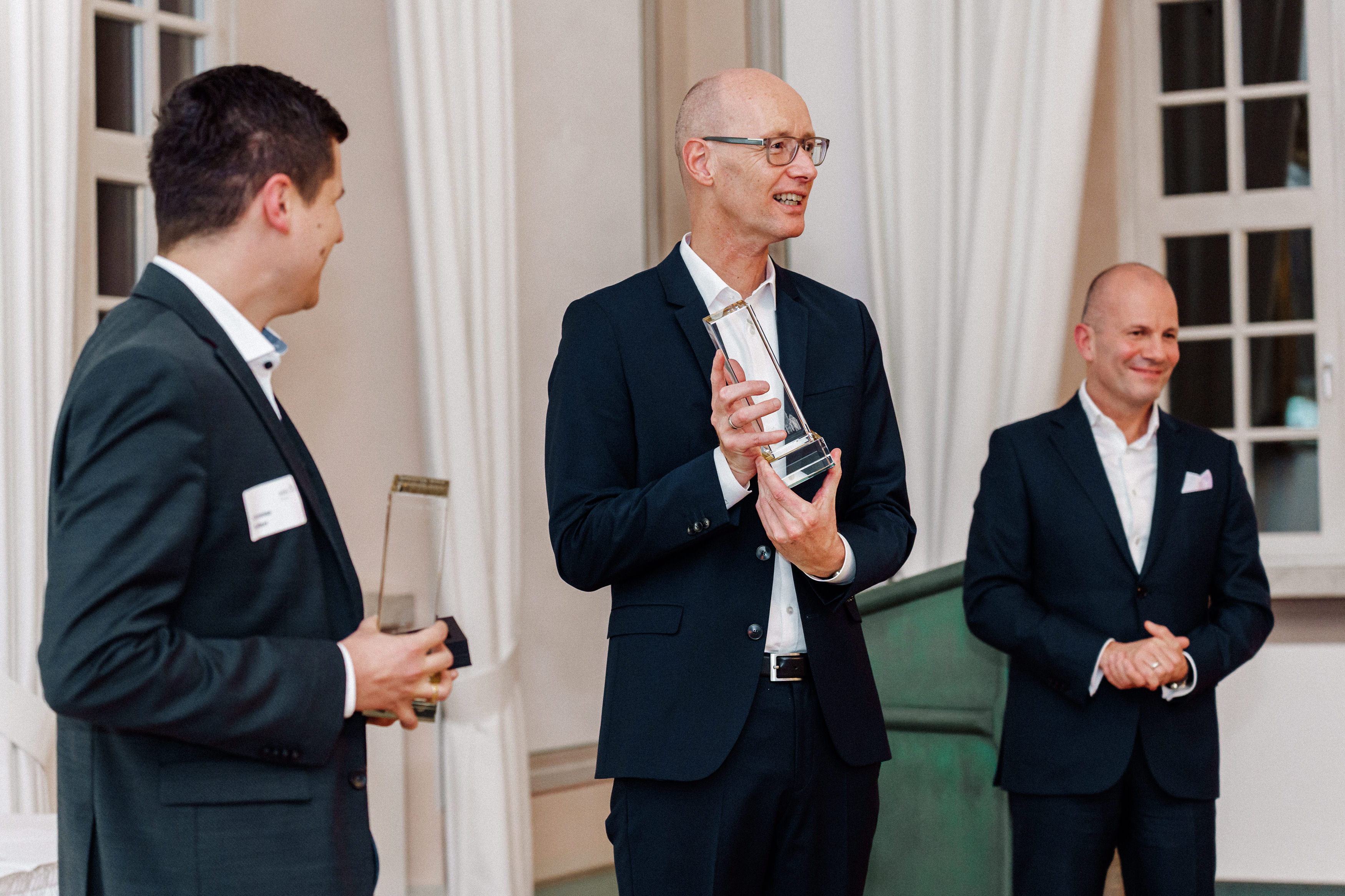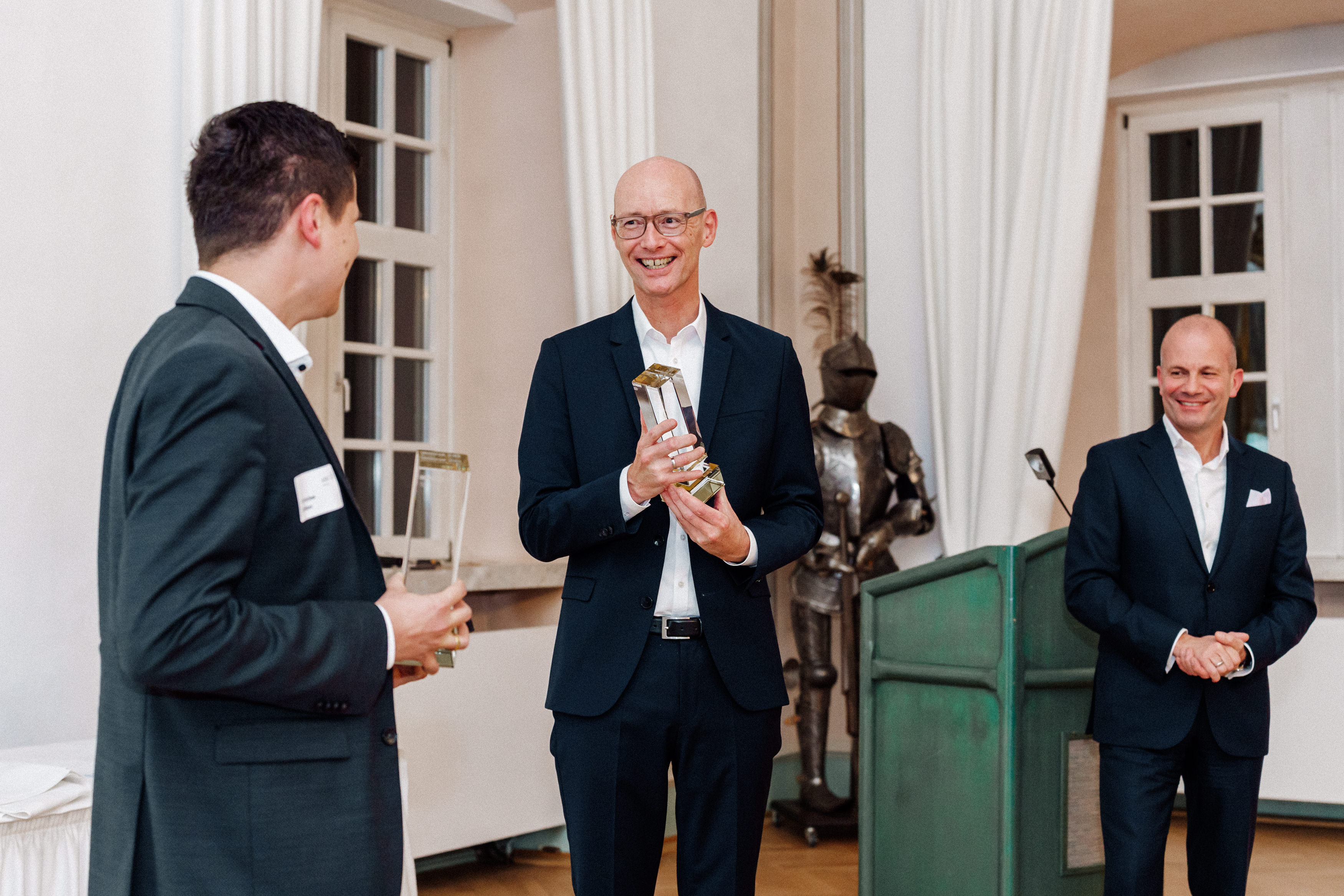 Die Jury – Peter Rausch (Vorstand ADG), Thomas Lurch (Bereichsleiter Union Investment), Christoph Stumm (Geschäftsführer ADG Business School) und Malte Ringsdorf (Geschäftsführer ADG Alumni) – hörte genau hin. Und fand: Dabeisein ist alles. Aber drei Arbeiten haben sich am Ende doch ziemlich eindeutig hervorgehoben. Das sagte auch Peter Rausch am Abend, als er die Gäste an der langen Tafel im Rittersaal begrüßte – mit einem Augenzwinkern Richtung Olympia: „Dort gibt’s nur einmal Gold. Bei uns heute dreimal."