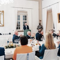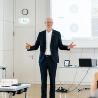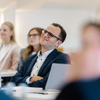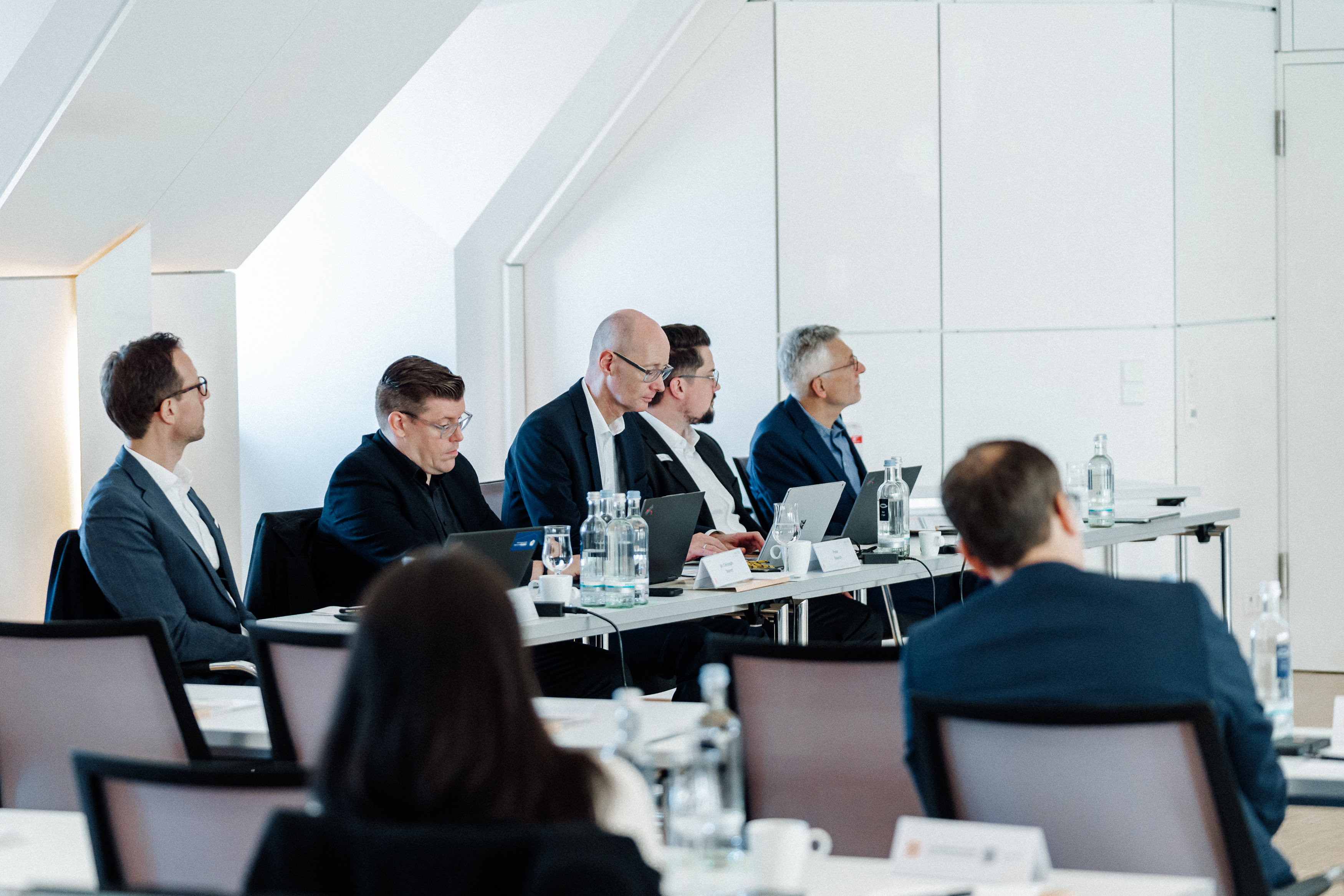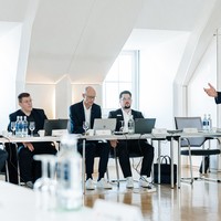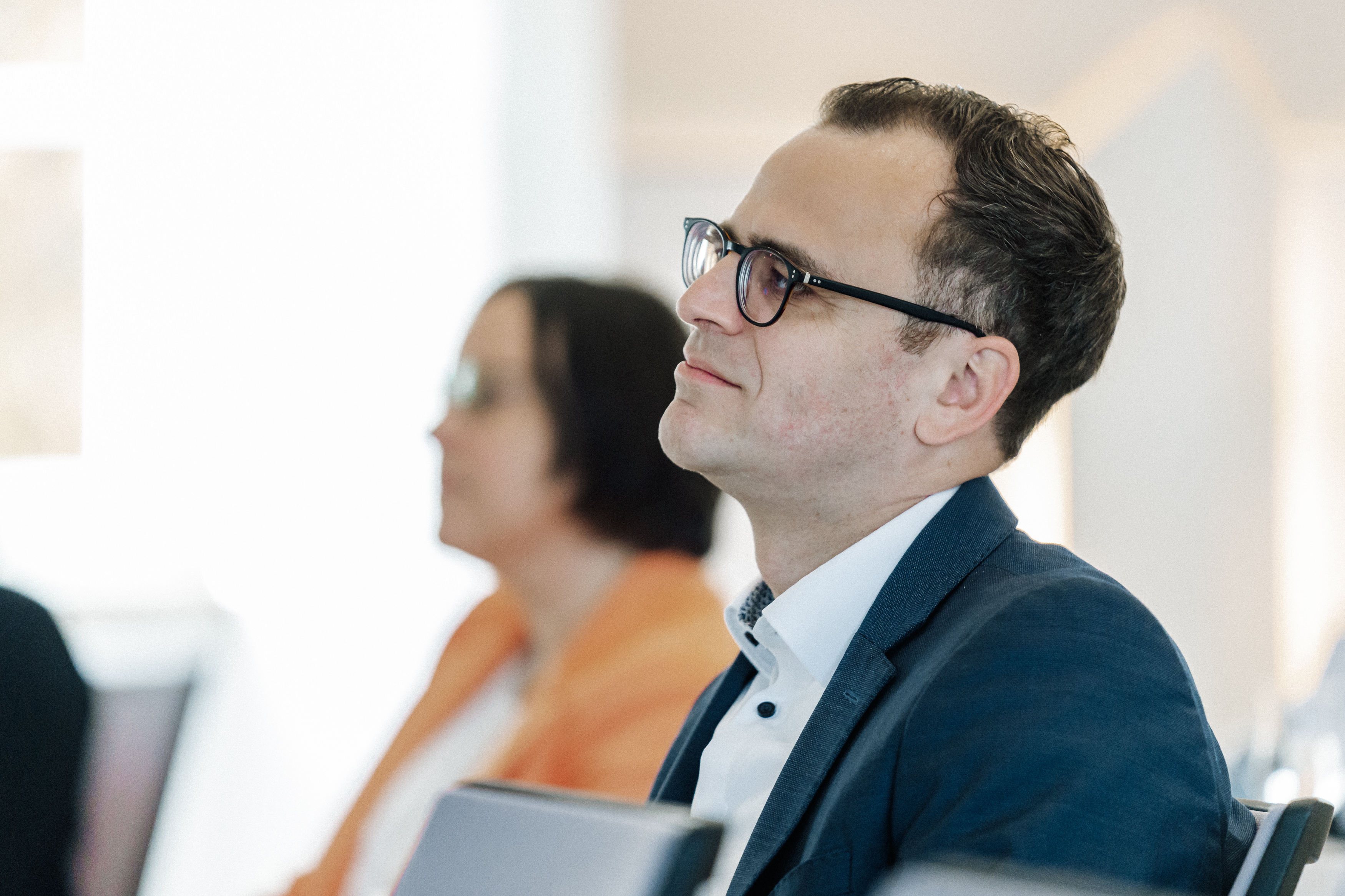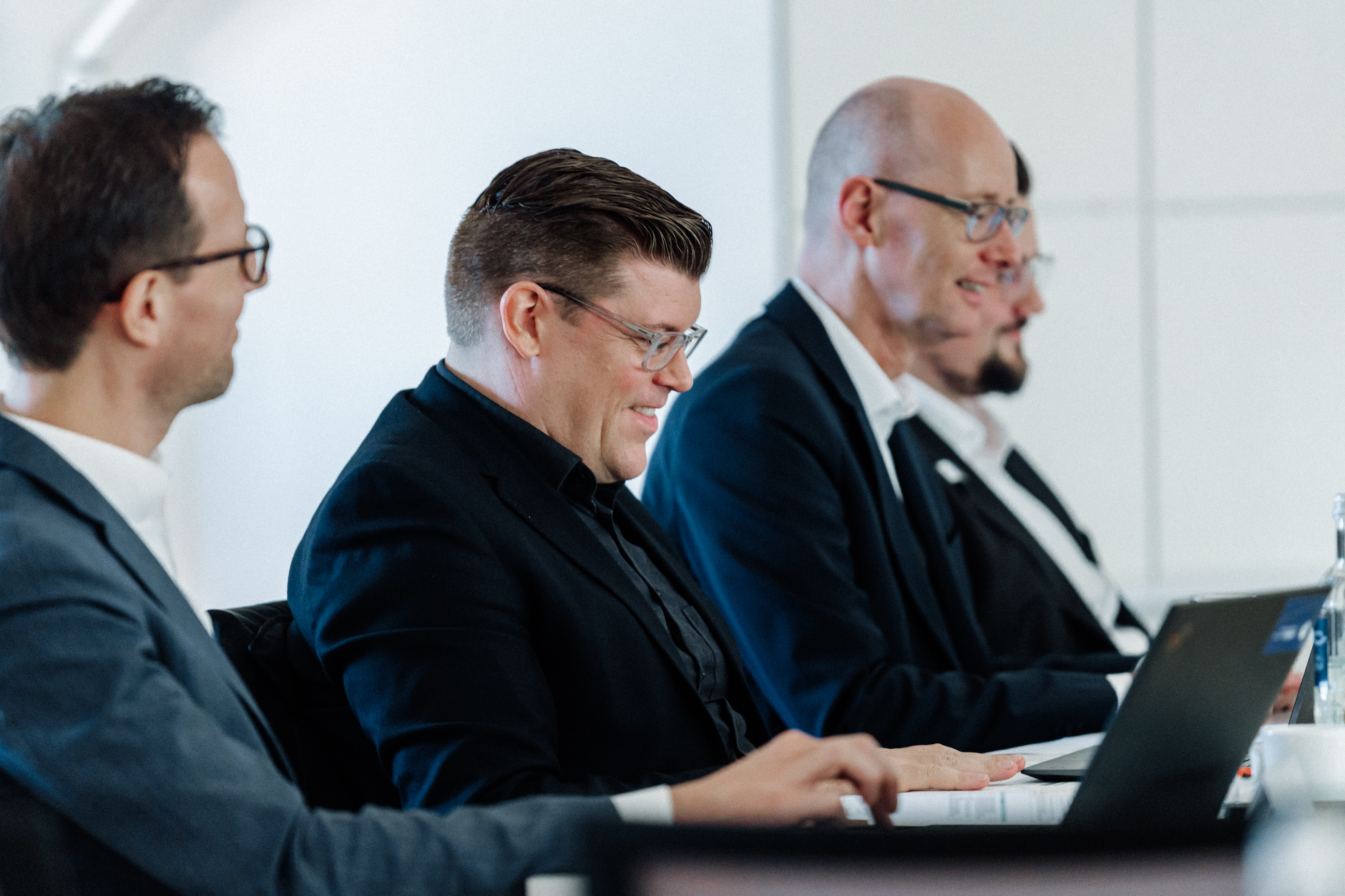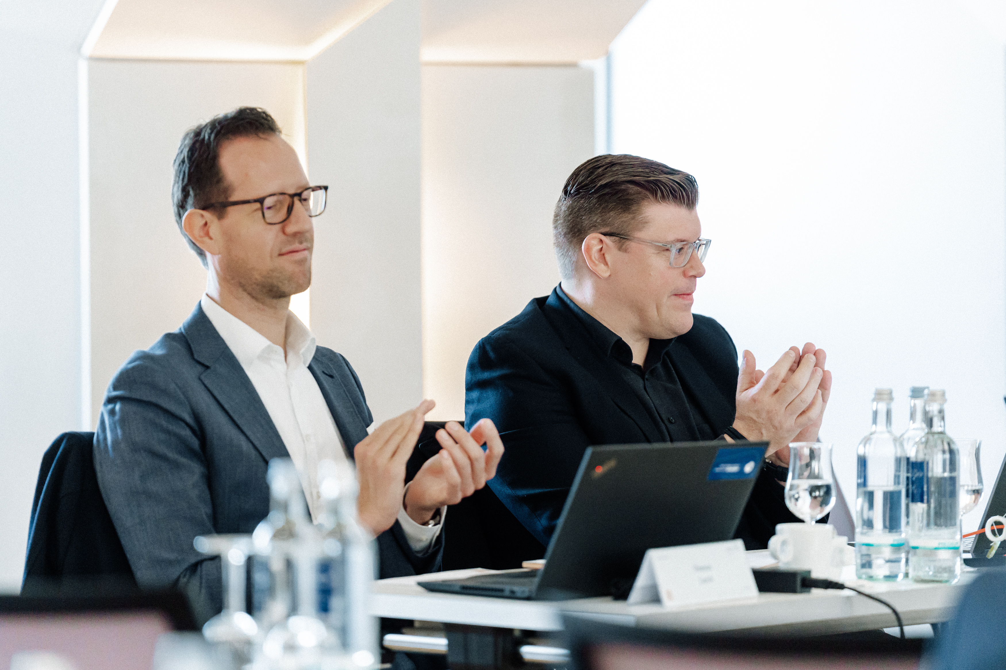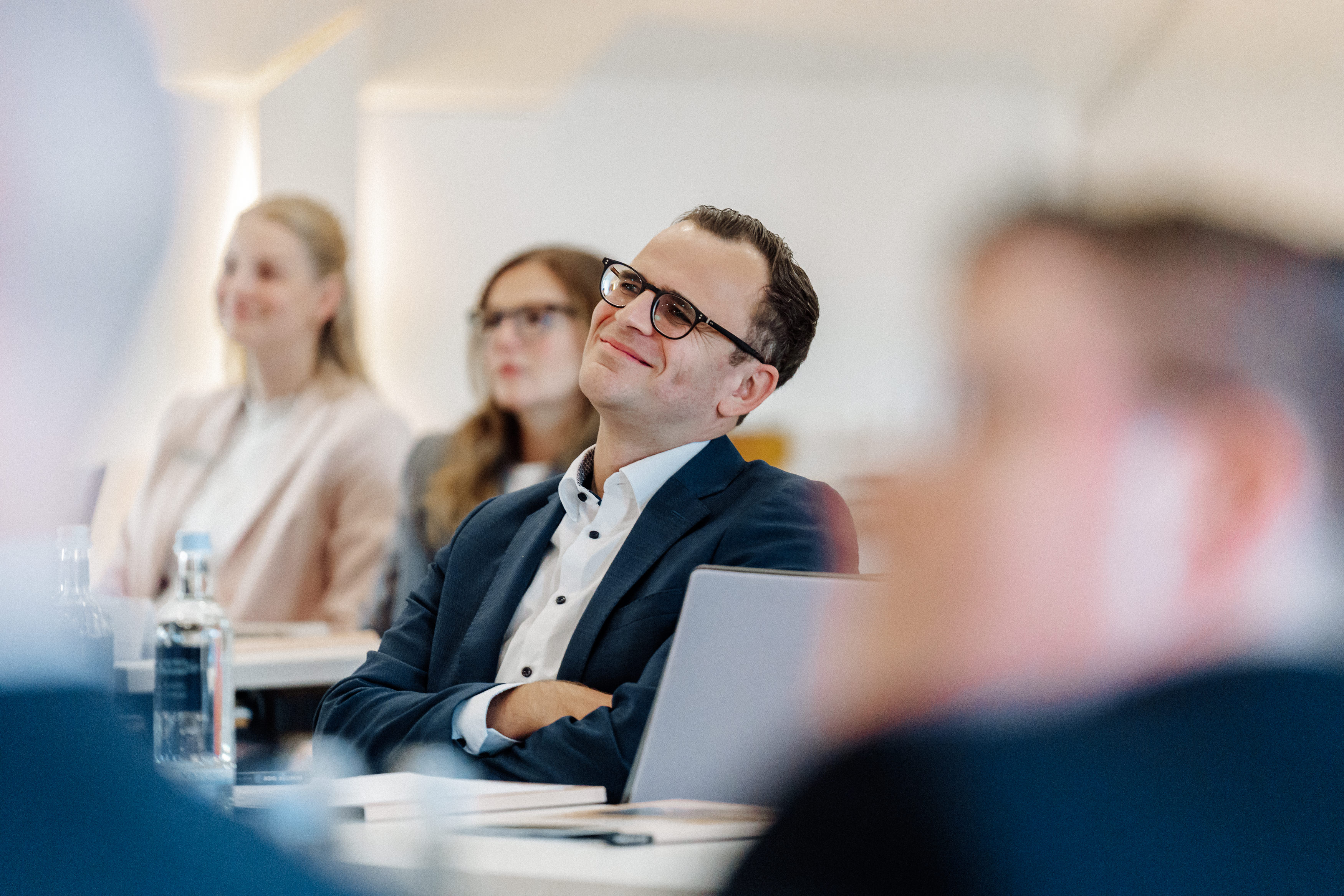 Die Jury – Peter Rausch (Vorstand ADG), Thomas Lurch (Bereichsleiter Union Investment), Christoph Stumm (Geschäftsführer ADG Business School) und Malte Ringsdorf (Geschäftsführer ADG Alumni) – hörte genau hin. Und fand: Dabeisein ist alles. Aber drei Arbeiten haben sich am Ende doch ziemlich eindeutig hervorgehoben. Das sagte auch Peter Rausch am Abend, als er die Gäste an der langen Tafel im Rittersaal begrüßte – mit einem Augenzwinkern Richtung Olympia: „Dort gibt’s nur einmal Gold. Bei uns heute dreimal."