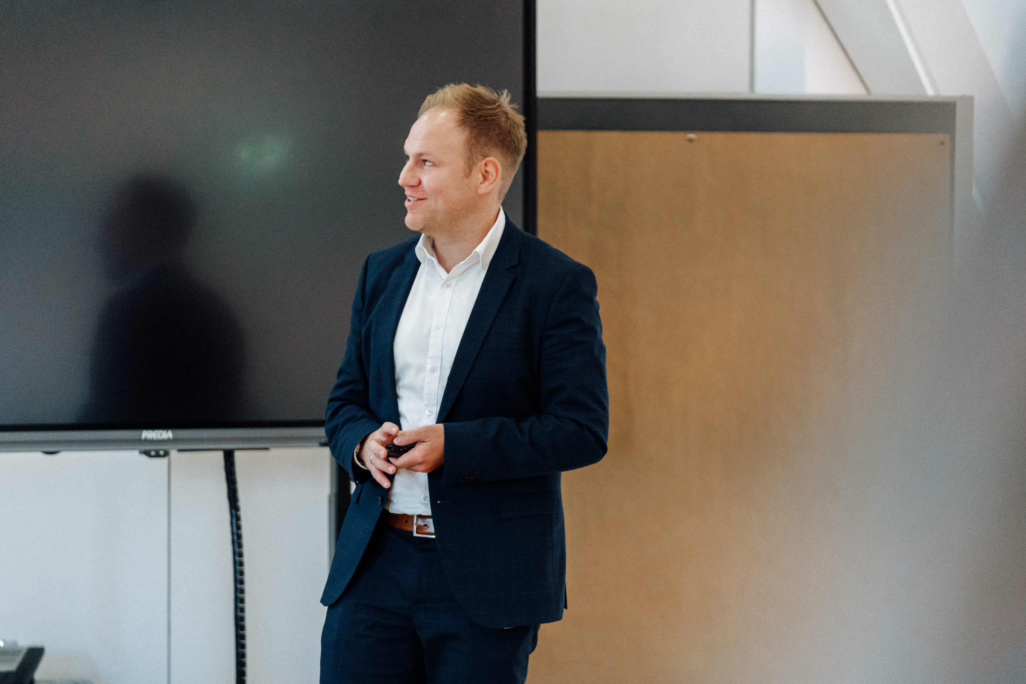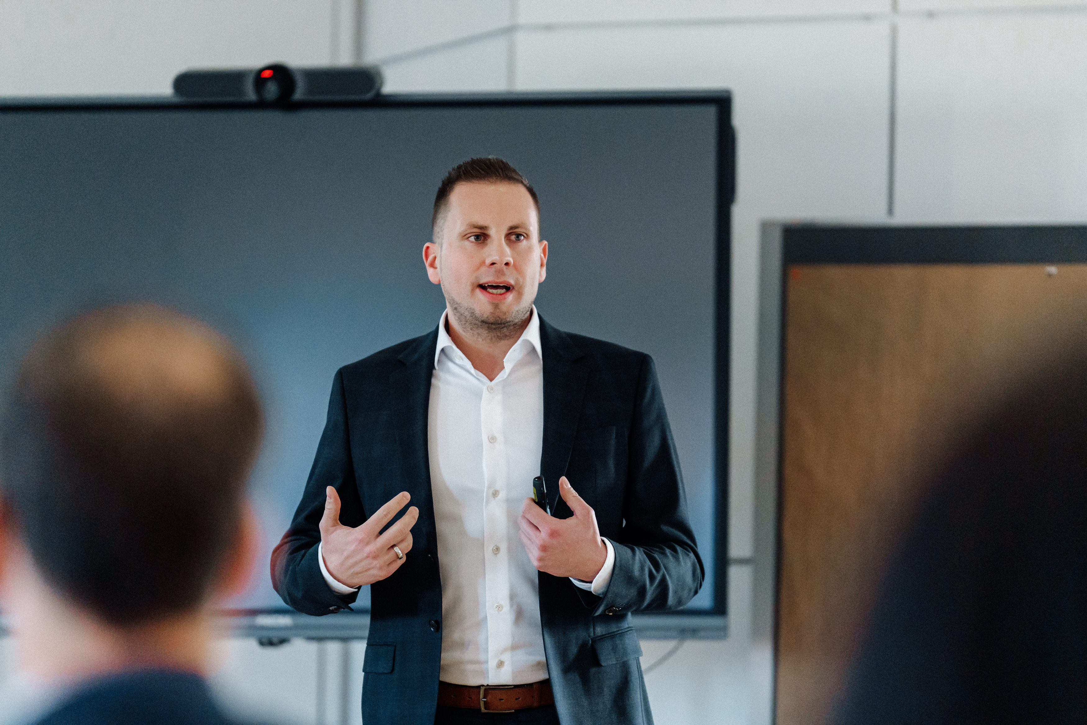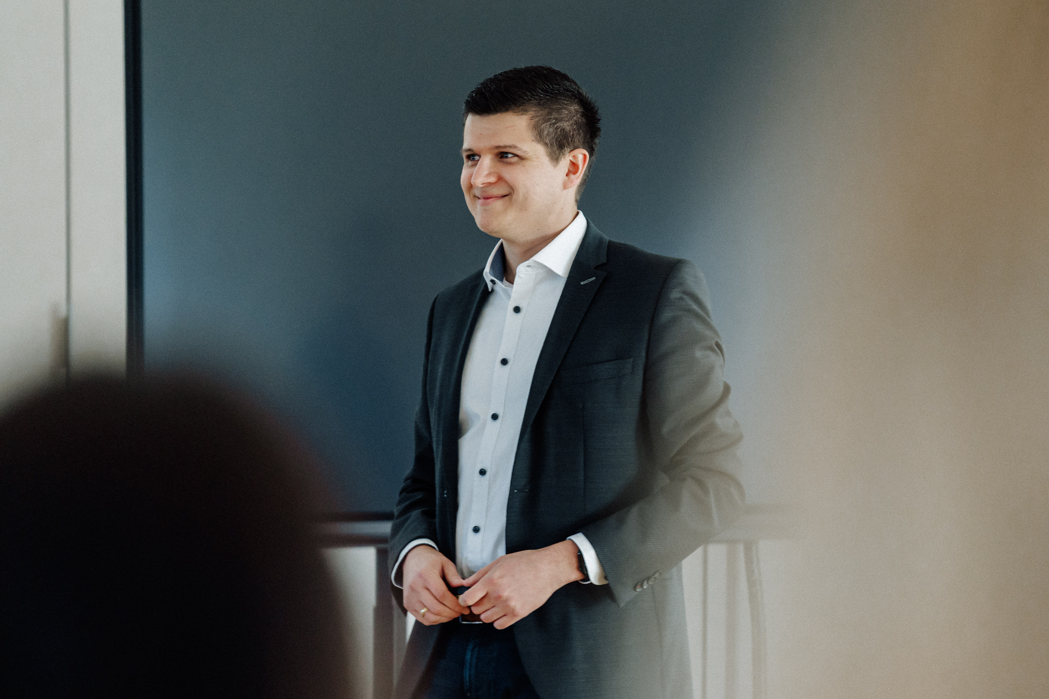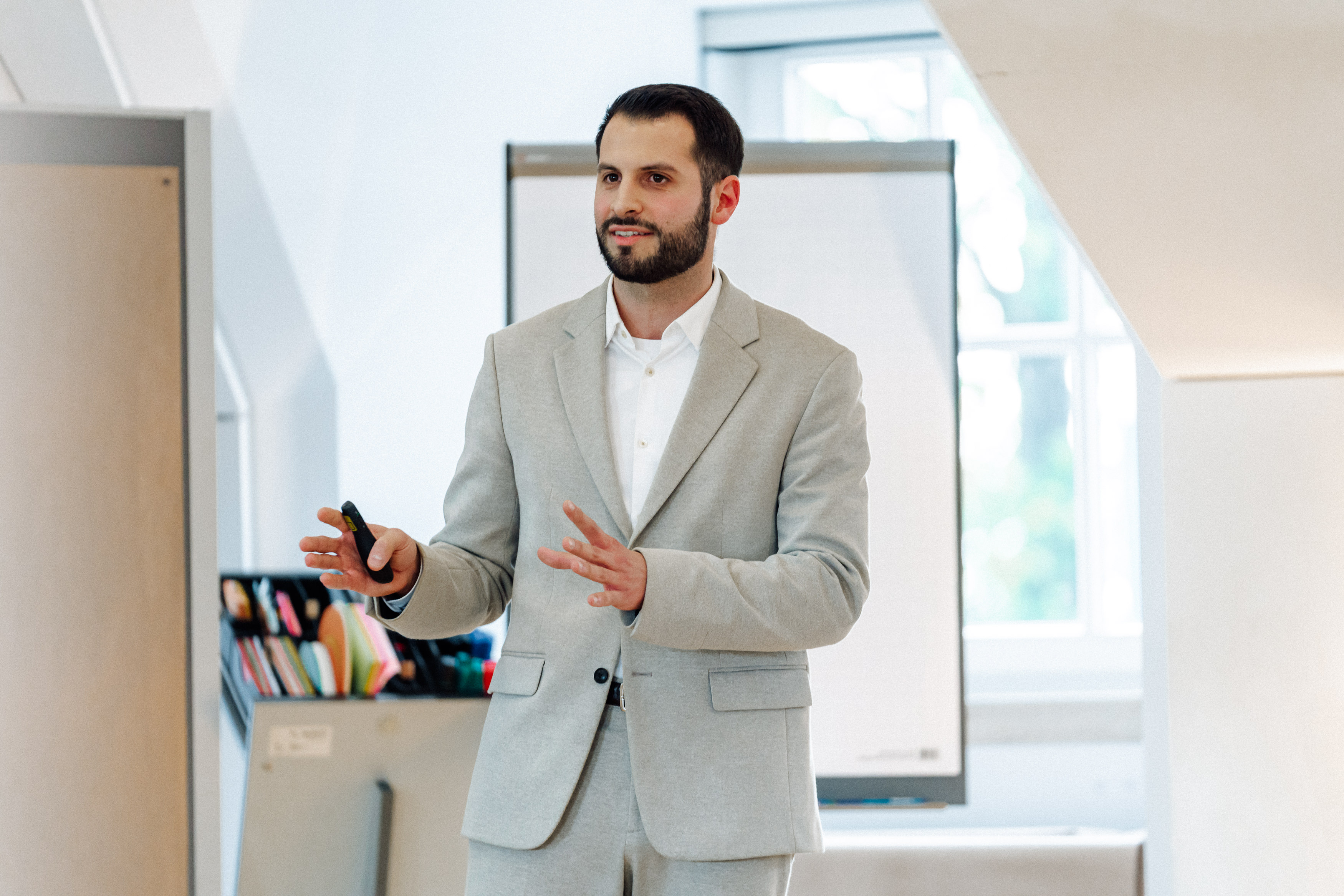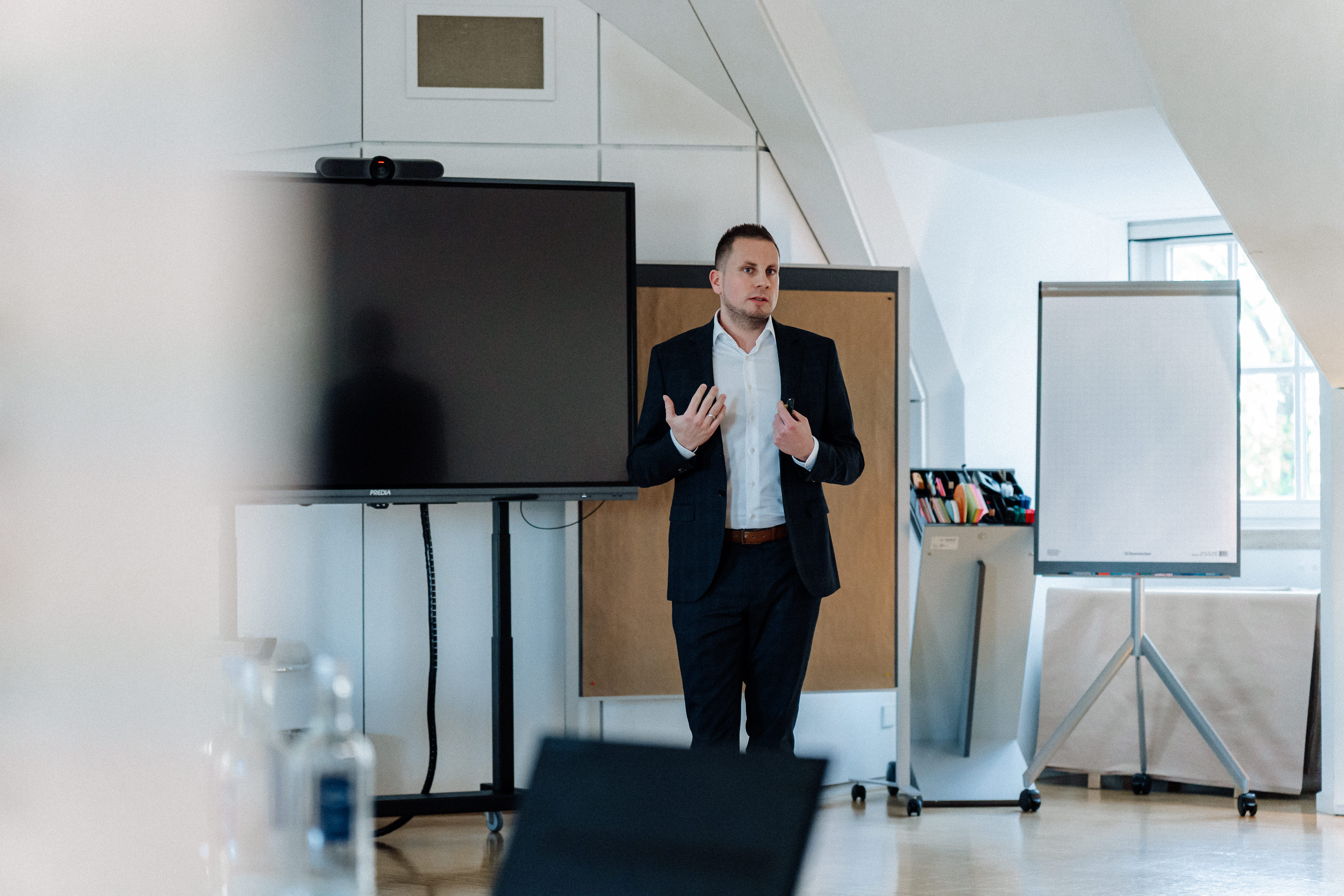 Moderator Joachim Kehr, Geschäftsführer des ADG Alumni e.V., führte durch den Tag – mit viel Gespür für Atmosphäre und Menschen. Die Pitches: kurz, klar, kraftvoll.