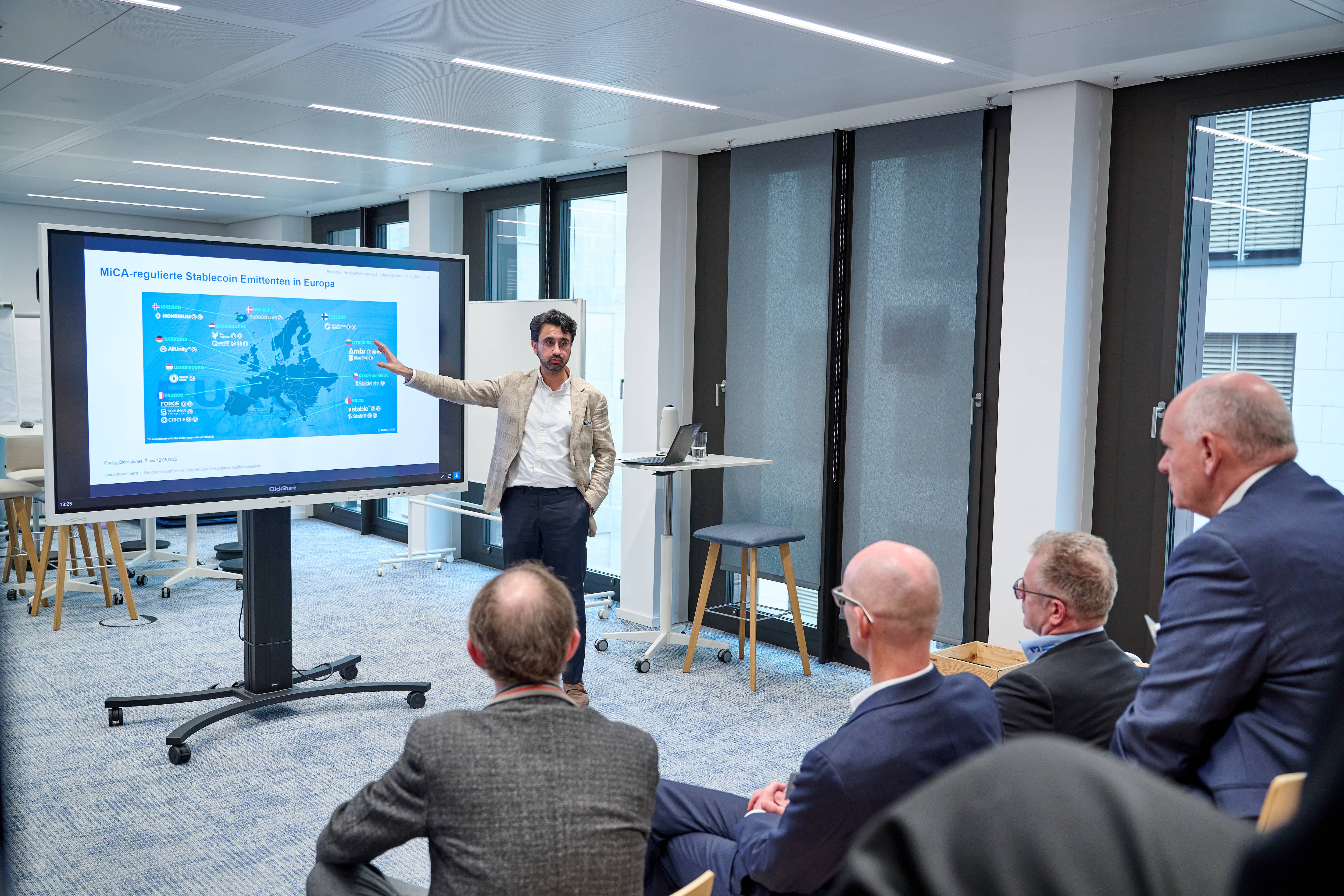 Daniel Bathe (Senior Portfoliomanager Rohstoffe) ordnete Blockchain weniger technologisch als prozessual ein. Im Fokus stand, wie digitale Register Eigentum eindeutig abbilden können und wie sich Abwicklungsprozesse verändern, wenn sie in klaren, unveränderbaren Datenketten laufen. Die Frage war nicht, ob Blockchain kommt, sondern wo sie in bestehenden Strukturen tatsächlich Effizienz bringt.